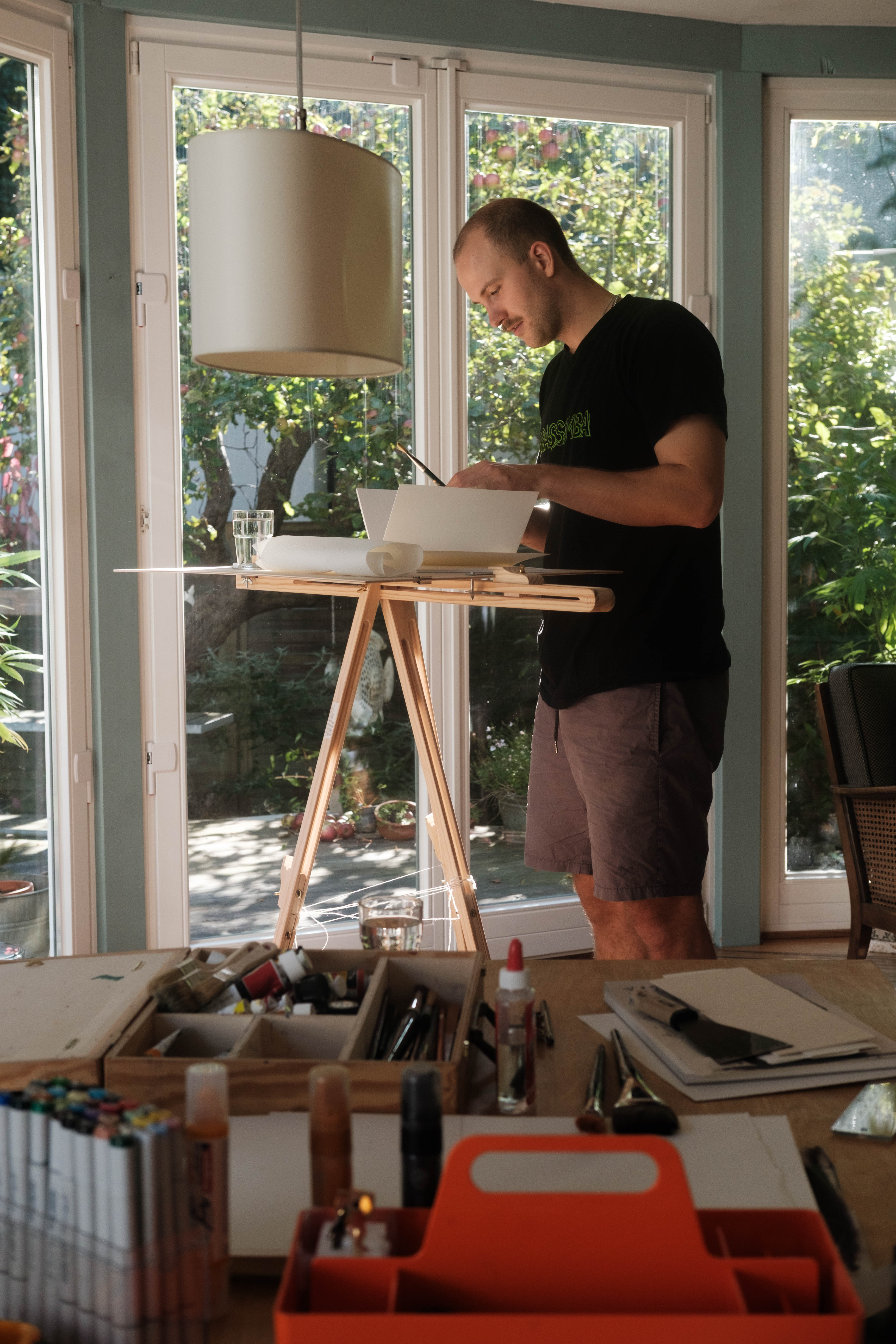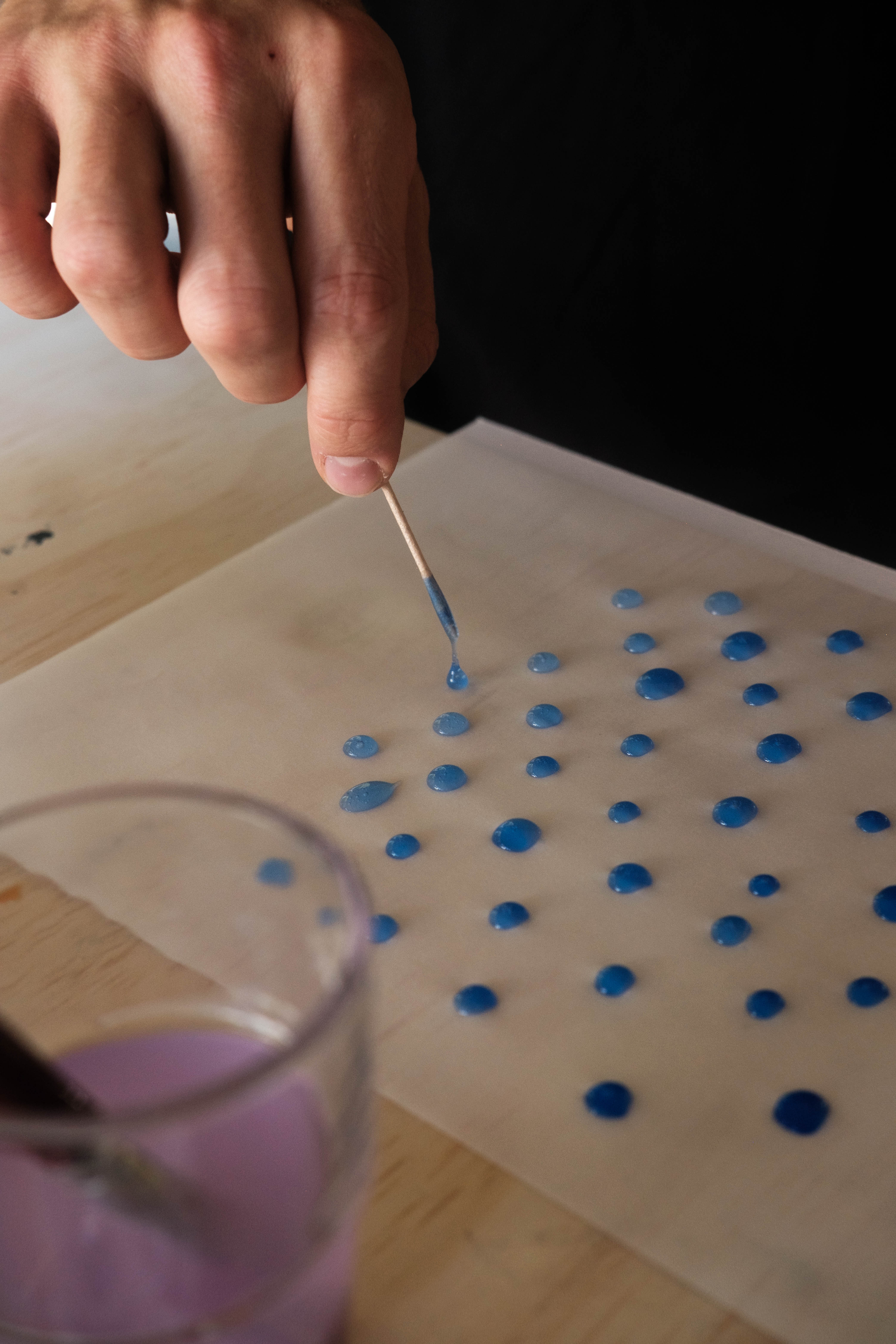 For the final output Rufus drew exploratory water shaped drops incorporating watercolor and glue on a thick cardboard.